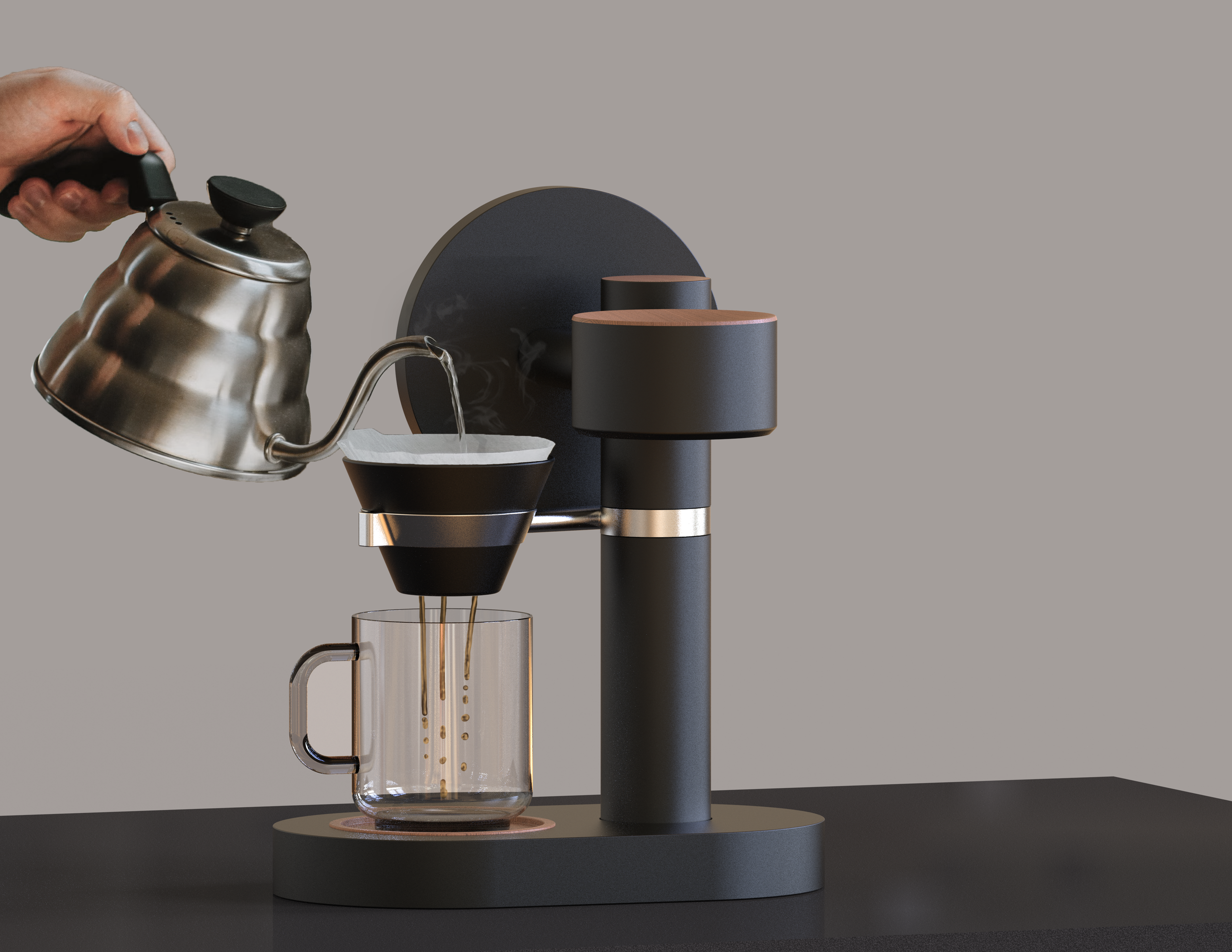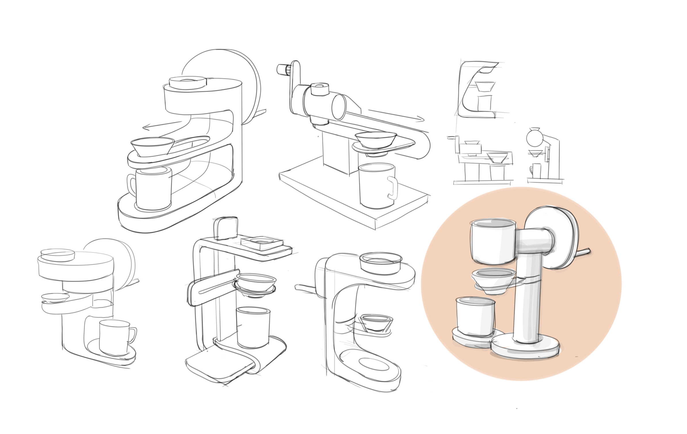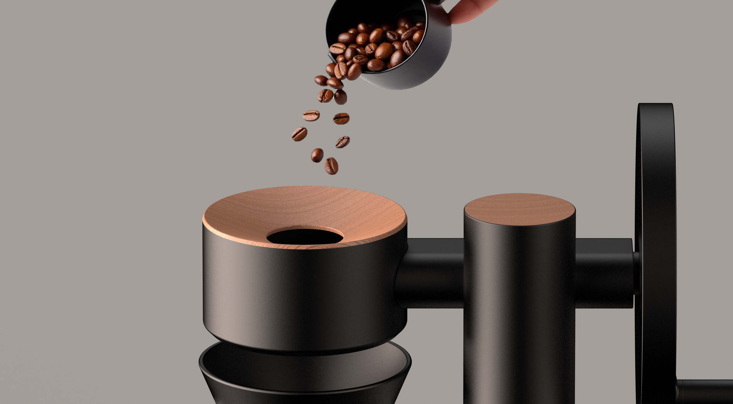 Inspired by the circular motion of grinding and pouring, I landed on a form that reflects movement and function with cylindrical rotation, visualizing the spirit of pour-over.