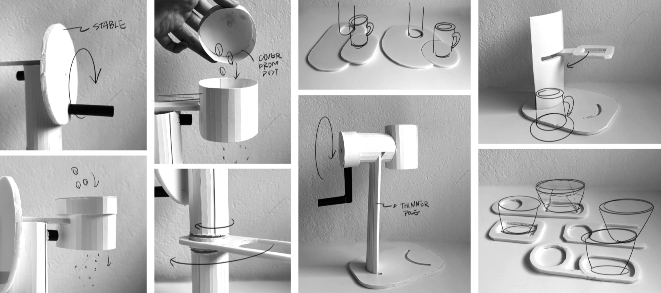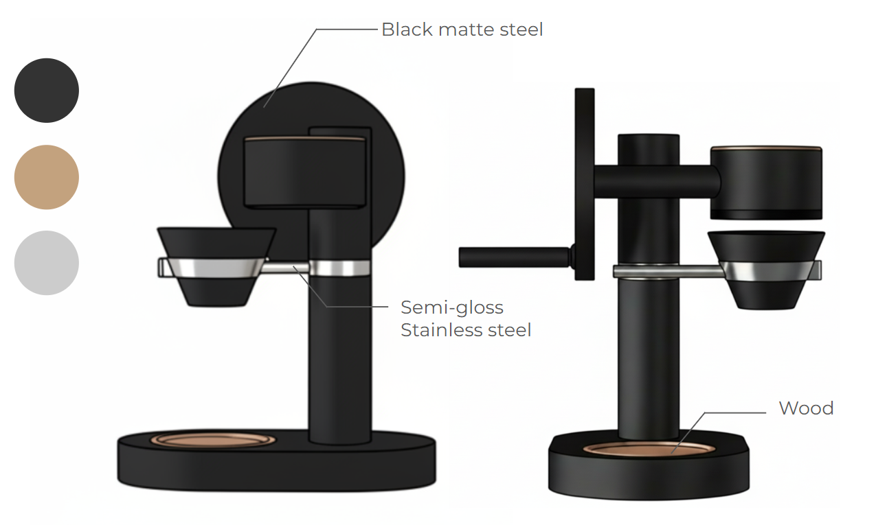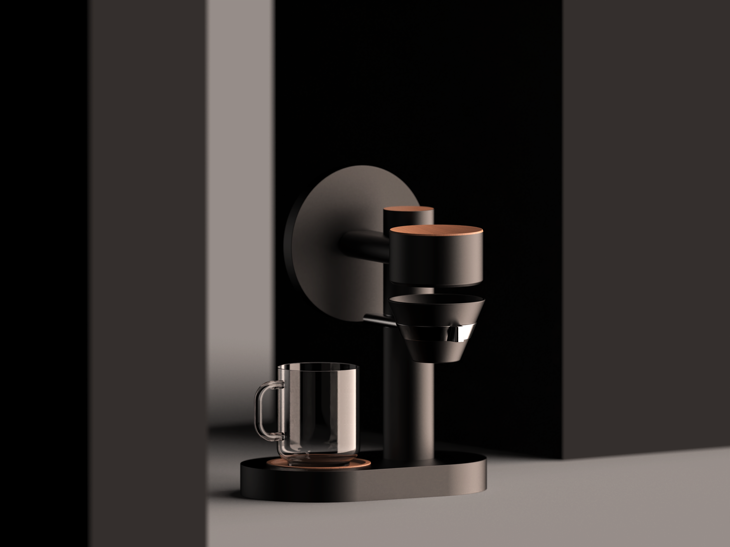Inspired by the circular motion of grinding and pouring, I landed on a form that reflects movement and function with cylindrical rotation, visualizing the spirit of pour-over.